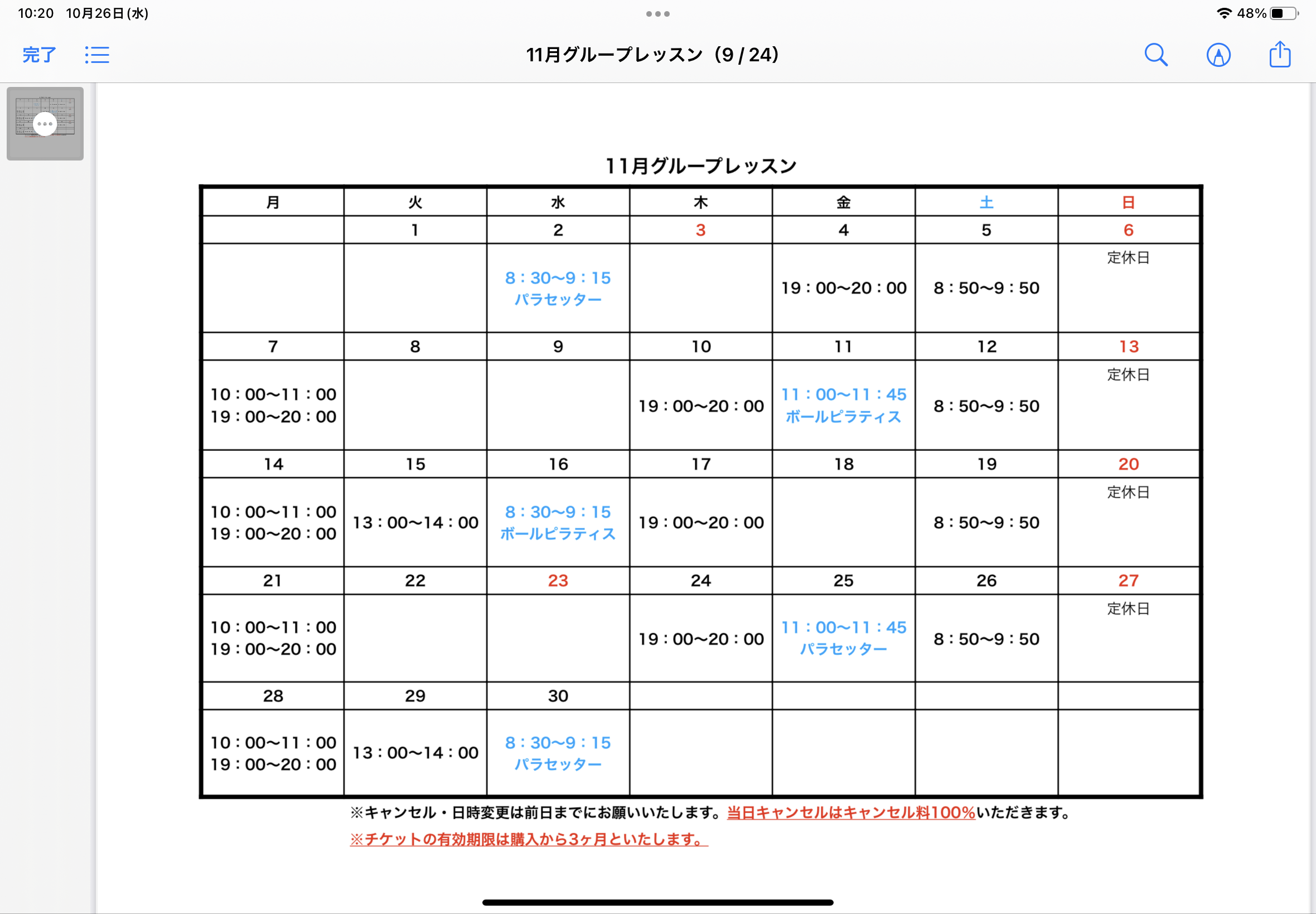 2022年10月26日「11月グループレッスンスケジュール🍁」