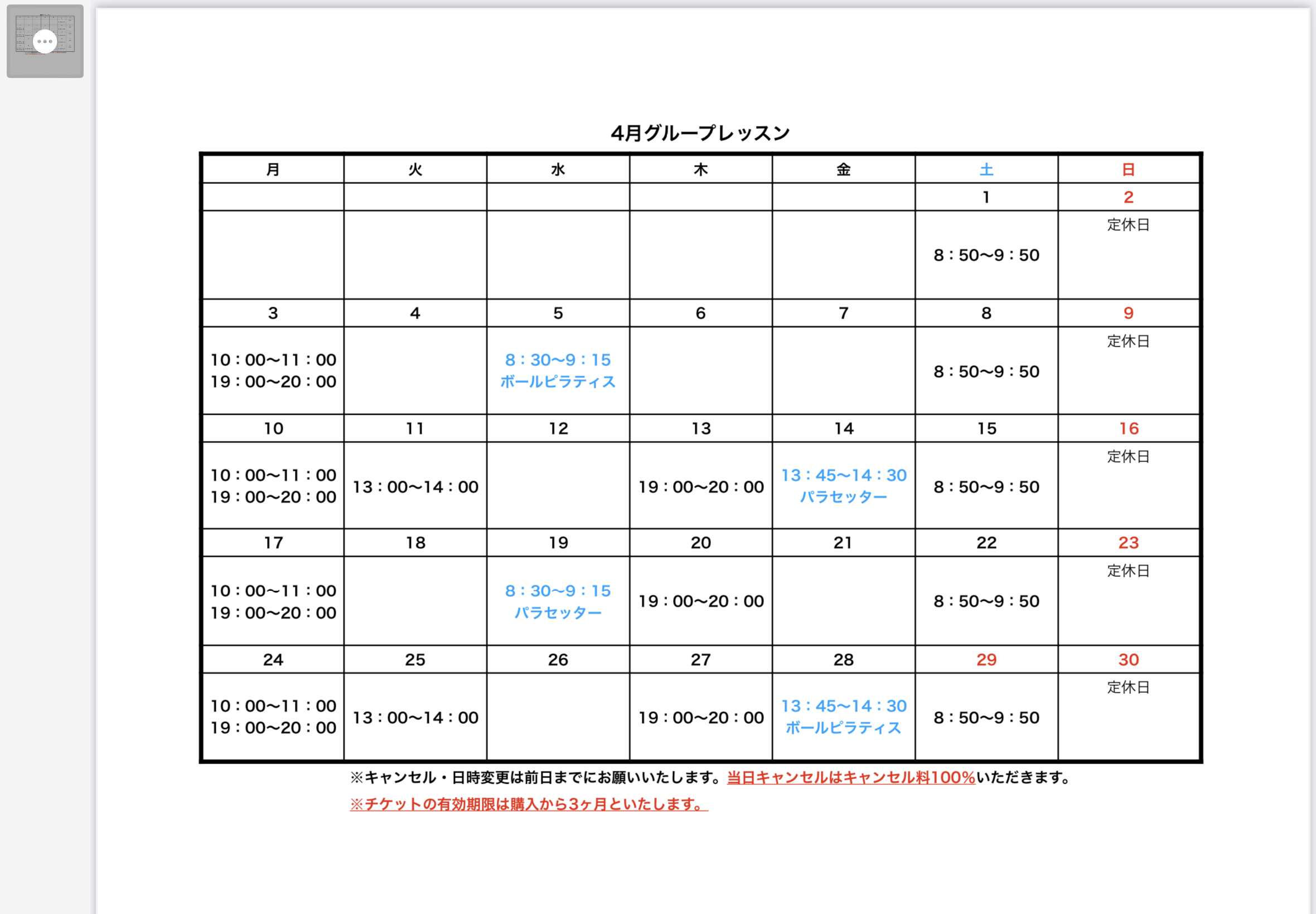 2023年03月25日「4月グループレッスンスケジュール🌸」