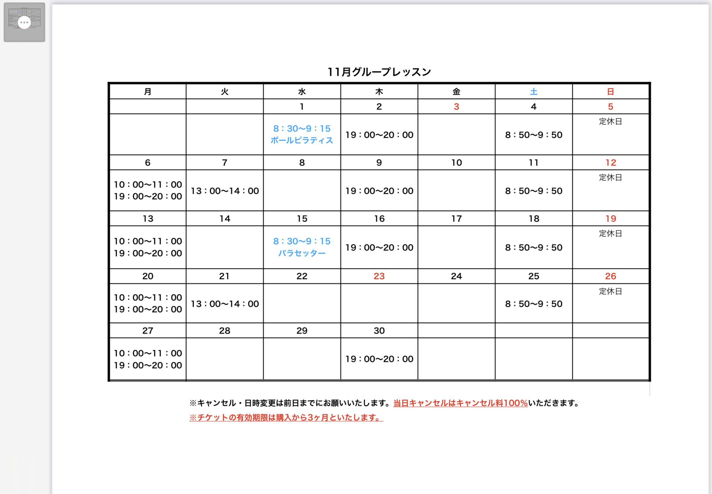 2023年10月23日「11月グループレッスンスケジュール🍁」