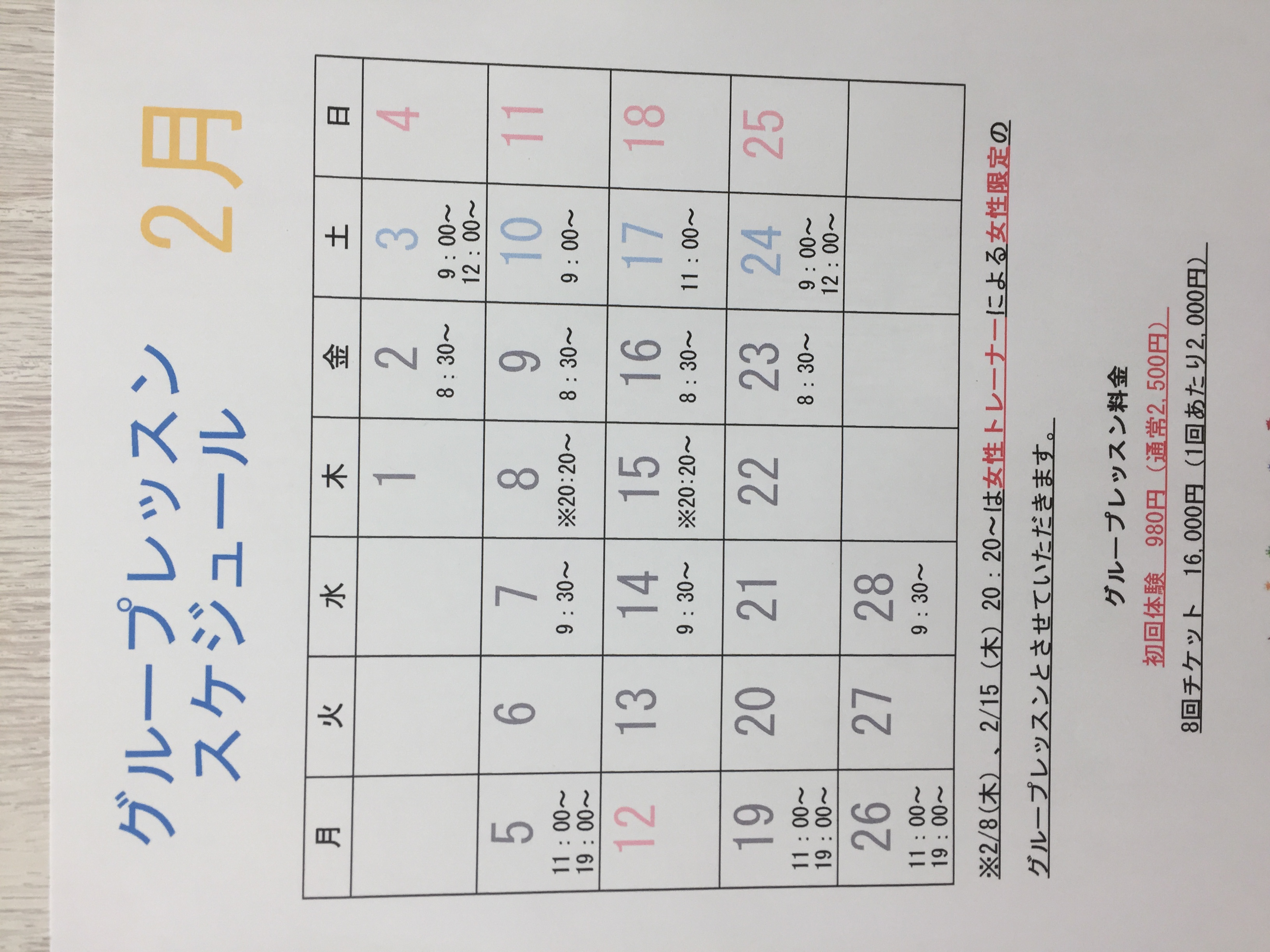 2018年02月02日「2月のピラティスグループレッスンの日程です🏋️♀️」